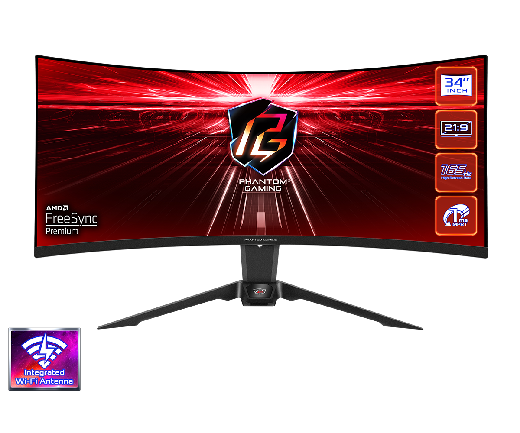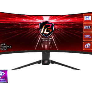 Геймерский Профессиональный Монитор из серии PHANTOM GAIMING 34" ASRock PG34WQ15R2B VA 3440x1440@165Hz 1мс 300cd/m2 3000:1 Curved 1500R, HDR 400, 2xHDMI DP Встроенные колонки 2Wx2, Регулировка высоты, Встроенная антенна Wi-Fi, Black