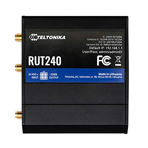 Индустриальный маршрутизатор 4G LTE Cat4 беспроводной 300M Teltonika RUT240 <1 порт LAN 10/100 Mbps, WAN 10/100 Mbps, 1 слот для SIM-карты, 1 съёмная антенна Wi-Fi, 2 съёмные внешние антенны 4G LTE (SMA), 300 Mbps на 2,4GHz, 4G/LTE (Cat 4), 3G, 2G, Teltonika RMS, Рабочая температура от -40 °C до 75 °C, Рейтинг защиты IP30>