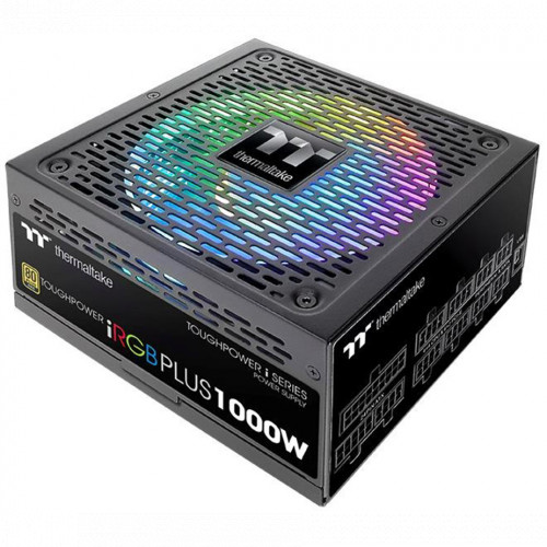 Блок питания, Thermaltake, Toughpower iRGB 1000W, PS-TPI-1000F3FDGE-1, 1000W, ATX, 80 Plus Gold, APFC, 20+4 pin, 4+4pin, 12*Sata 5pin, 6*PCI-E 6+2 pin, Вентилятор 14 см, Кабель питания, Чёрный