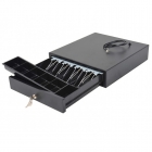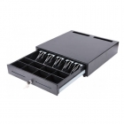 Денежный ящик MERCURY CD-330E cash drawer, black (черный), пластиковые крепления ящика, автоматическое открывание замка, 4 отдела для купюр (регулир.), 5 отделов для монет, 335х370х95мм