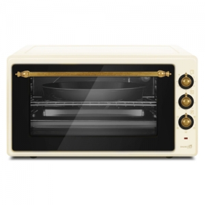 Электрическая духовка, объем 60 л, конвекция, эмалированное покрытие, термостат, таймер, подсветка духовки, двойное жароустойчивое стекло, цвет бежевый, стиль ретро |