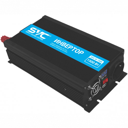 Инвертор, SVC, SI-1500, Мощность 1500ВА/1500Вт, Вход 12В/Выход 210-240В, 1 вых.: Shuko CEE7, USB-порт 2А, Экран, Защита от перегрева, перегрузки, короткого замыкания, Чёрный