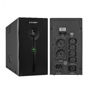 ИБП CROWN Line Interactive CMU-SP1200 COMBO USB 1200VA\720W, корпус металл, 2x12V/9AH, розетки 4*IEC C13 + 2*EURO + 1*IEC C13 bypass, трансформатор AVR 140-290V, съёмный кабель питания 1.8 м, порт RJ11/45, порт USB, LED-индикация, защита: от перегрузки, от КЗ, от скачков напряжения, ПО