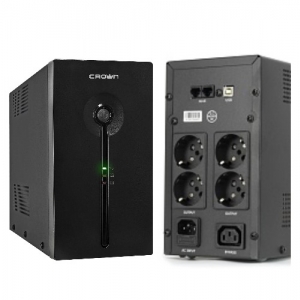 ИБП CROWN Line Interactive CMU-SP1500EURO USB 1500VA\900W, корпус металл, 2x12V/9AH, розетки 4*EURO+1*IEC С13 bypass, трансформатор AVR 140-290V, cъёмный кабель питания 1.8 м, порт RJ-11/45, порт USB, LED-индикация, защита: от перегрузки, от КЗ, от скачков напряжения, ПО