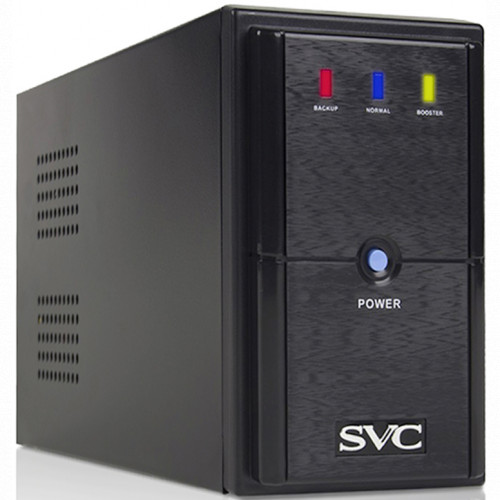 Источник бесперебойного питания, SVC, V-650-L, Мощность 650ВА/390Вт, Диапазон работы AVR: 165-275В, AVR в режиме Booster: 138-292В, Бат.: 12В/7.5 Ач*1шт., 3 вых.: 2 Shuko CEE7+1 IEC C13 (Bypass), Чёрный