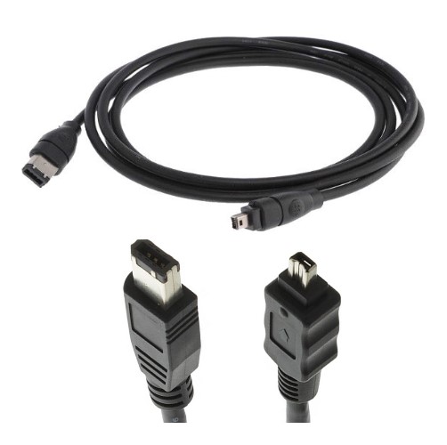 Кабель стандарта IEEE 1394 (FireWire, i-Link) для обмена цифровой информацией между компьютером и другими электронными устройствами: Apple Mac, Apple iPod, жесткие диски, miniDV видеокамеры. Первый разъем имеет 6 контактов (скорость передачи данных около 400 Мбит/с). Второй разъем имеет 4 контакта (скорость передачи данных около 200 Мбит/с).