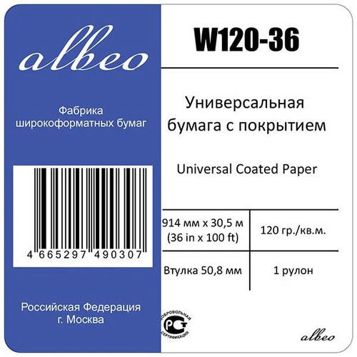 Бумага универсальная с покрытием, 120г/м2, 0.914x30.5м, втулка 50.8мм