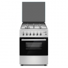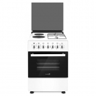 Плита комбинированная, размеры: 85х60х60 см, 2 газовые конфорки, 2 электрические конфорки, поджиг, электрическая духовка, цвет: белый, эмалированные решетки, стеклянная крышка.