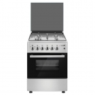 Плита газовая, размеры: 85х60х60 см, 4 газовые конфорки, поджиг, электрическая духовка, цвет: стальной, эмалированные решетки, стеклянная крышка.