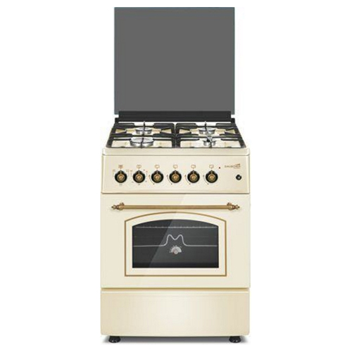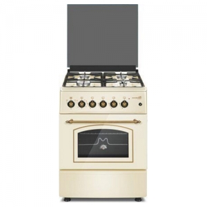 Плита газовая, размеры: 85х60х60 см, 4 газовые конфорки, поджиг, электрическая духовка, конвекция, цвет: бежевый, чугунные решетки, стеклянная крышка. |
