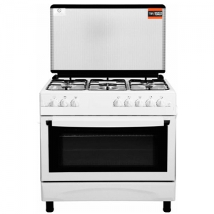 Плита комбинированная, размеры: 85х90х60 см, объем духовки: 110 л, 5 газовые конфорки, электрическая духовка, эмалированные решетки, поджиг, подсветка, цвет: белый, стеклянная крышка, термостат, таймер, стекло дверцы духовки: 2-х слойное.