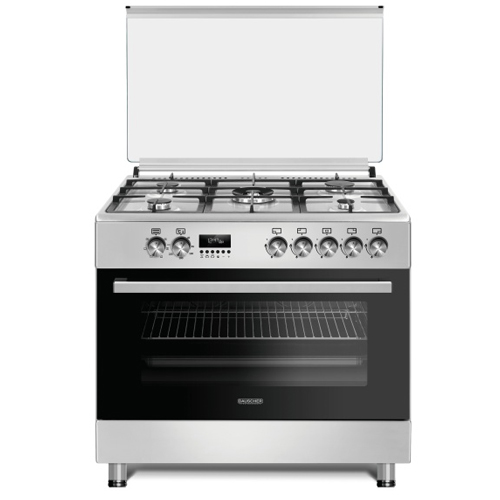 Плита комбинированная, размеры: 85х90х60 см, 5 газовые конфорки, электрическая духовка, двойная конвекция, объем духовки: 110 л, газ контроль, цифровой таймер, чугунные решетки, поджиг, подсветка, цвет: стальной, стеклянная крышка, термостат, таймер, стекло дверцы духовки: 2-х слойное.
