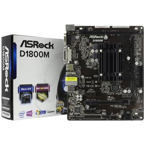 Материнская плата с процессором ASRock D1800M Intel® Celeron Dual-Core J1800 2.41 GHz DDR3/DDR3L (10661333) 2xSATA2 Intel HD Graphics 1xPCIe 2.0x 16, 2xPCIe 2.0 x1 D-Sub, DVI-D, HDMI 1xCOM 1xUSB 3.0, 6xUSB 2.0 (3 Front, 3 Rear), Gigabit LAN, 5.1 CH HD Audio, mATX, BOX