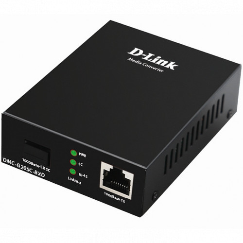 Медиаконвертер, D-Link, DMC-G20SC-BXD/A1A, WDM, 1 порт 100/1000Base-T, 1 порт 1000Base-LX с разъемом SC (Тx: 1550 нм. Rx: 1310 нм) для одномодового оптического кабеля (до 20 км)