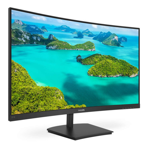 Изогнутый Монитор с Тонкой Рамкой и Высокой Контрастностью 27" PHILIPS 271E1SCA/00 VA, 1920x1080, 4мс, 250кд/м, 3000:1, Mega Infinity DCR, 1xVGA, 1xHDMI, Встроенные Колонки 2x3W, Угол Обзора 178/178, R1500, В комплекте: кабель HDMI, Цвет: Черный с Глянцевым Покрытием.