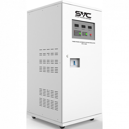 Стабилизатор, SVC, SVC-3-100K, Мощность 100кВА/80кВт,, Трёхфазный, Индикация режимов работы, Диапазон работы AVR: 276-450В, Клеммная колодка, Белый