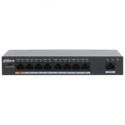 Коммутатор, Dahua, DH-PFS3009-8ET-65, Настольный, 8 портов x10/100 Base-T (Питание PoE). 1 порт x10/100 Base-T, Корпус металл