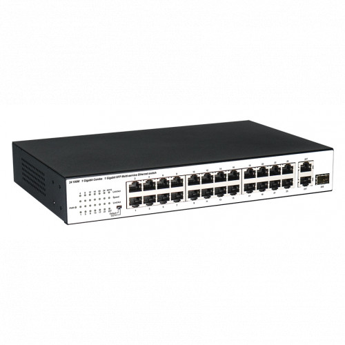 Коммутатор, BDCOM, S1226L, Неуправляемый, 24 порта 10/100M RJ45, 2 комбо-порта 1000М SFP/RJ45, Настольный