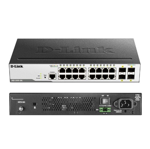 Коммутатор D-Link DGS-3000-20L управляемый 2 уровня с 16 портами 10/100/1000Base-T и 4 портами 1000Base-X SFP
