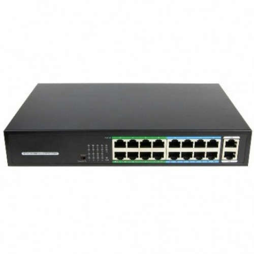 Коммутатор PoE 16-портовый ONV-H1016PLD long distance <16 портов 10/100Mbps PoE802.3at/af, +2 * 1000Mbps RJ45, 9-16 порт 250 Meters @10M, 1*SFP port, самовосстановление сети, бюджет мощности 200W>