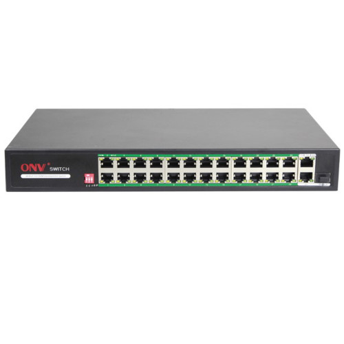 Коммутатор PoE 24-портовый ONV-H1024PLD long distance <24 портов 10/100Mbps PoE802.3at/af, +2 * 1000Mbps RJ45, 17-24 порт 250 Meters @10M, 1*SFP port, самовосстановление сети, бюджет мощности 250W>