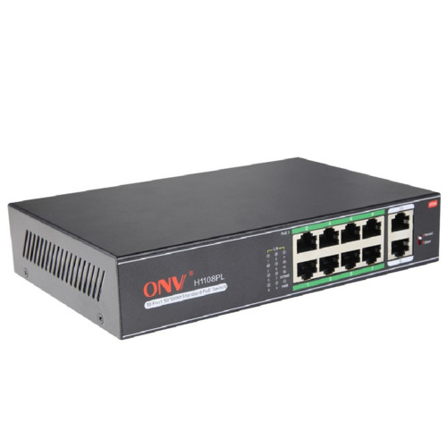 Коммутатор PoE 8-портовый ONV-H1108PL long distance <8 портов 10/100Mbps PoE802.3at/af (30W на порт), +2 Uplink порта 10/100Mbps, 250 Meters @10M, Bandwidth:2Gbps, бюджет мощности PoE 120W>