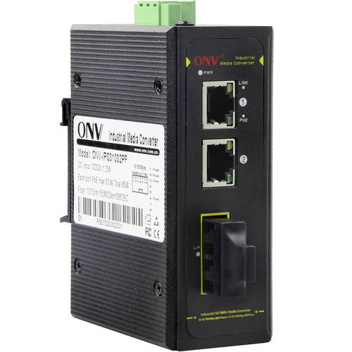 Коммутатор PoE индустриальный 2-портовый ONV IPS31032PS-S <2 порта 10/100Mbps PoE 802.3af/at (max 30W на порт), 1 порт Optical 10/100M, SC Singlemode (25km) Single Fiber, 1310/1550nm (Модуль в комплекте), бюджет мощности PoE 60W (адаптер питания в комлекте)>