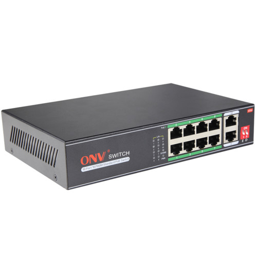 Коммутатор PoE 8-портовый ONV-H1108PLD long distance <8 портов 10/100Mbps PoE802.3at/af (30W на порт), +2 Uplink порта 10/100Mbps, 250 Meters @10M, Bandwidth:2Gbps, самовосстановление сети, бюджет мощности PoE 120W>