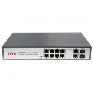 Коммутатор PoE управляемый 8-портовый ONV POE31108PFM <8 портов 10/100Mbps PoE 802.3af/at (max 30W на порт), 2 Gigabit Uplink TP Combo порт, 2 Gigabit Uplink SFP порта, коммутационая матрица 8,8Gbps, бюджет мощности PoE 130W>
