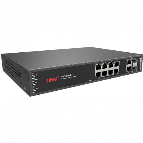 Коммутатор PoE 8-портовый ONV POE31128PF <8*10/100Mbps PoE, 2*10/100/1000M uplink RJ45 ports and 2*1000M uplink SFP, бюджет мощности PoE 130W (30W порт), встроенный блок питания>