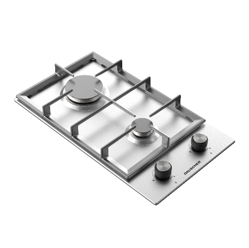 Габариты (ШхГ) : 30 x 51 см | Количество конфорок: 2 | Установка: Независимая | Материал панели: нержавеющая сталь | 2 газовые конфорки, 1 чугунные решетки| Переключатели: Поворотные ручки| Управление панели: Спереди