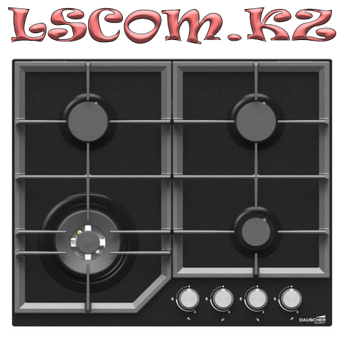 Встраиваемая газовая поверхность, габариты (ШхГ): 60 x 51 см, 4 газовые конфорки (1 конфорка WoK Sabaf), установка: независимая, материал панели: сталь, цвет: черный, материал решеток: чугун, способ подключения: газовая, электроподжиг: автоматический, переключатели: поворотные, расположение панели: спереди, газ контроль: есть.