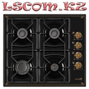 Встраиваемая газовая поверхность, габариты (ШхГ): 60 x 51 см, 4 газовые конфорки (1 конфорка WoK Sabaf), установка: независимая, материал панели: черное закаленное стекло, материал решеток: чугун, способ подключения: газовая, электроподжиг: автоматический, переключатели: поворотные, расположение панели: спереди.