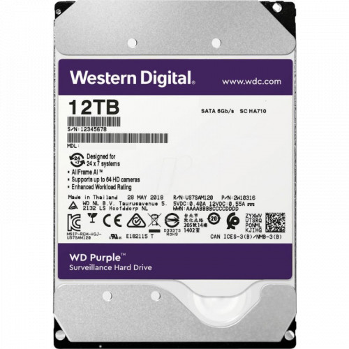 Накопитель на жестком магнитном диске WD Purple WD121PURX-78 12ТБ 3,5" 7200RPM 256MB (SATA-III) DV&NVR (AI) для видеонаблюдения Hikvision